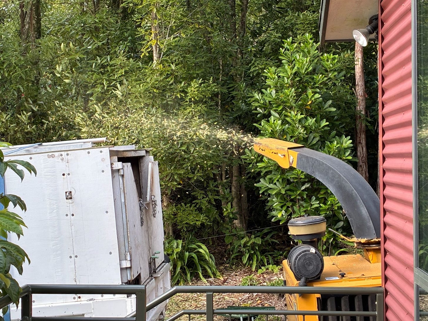 His offsider was managing the chipper.